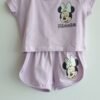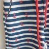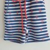 Conjunto composto por camisola com pormenor de bolso as riscas e calções com pormenor de riscas e ancoras vermelhas.