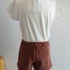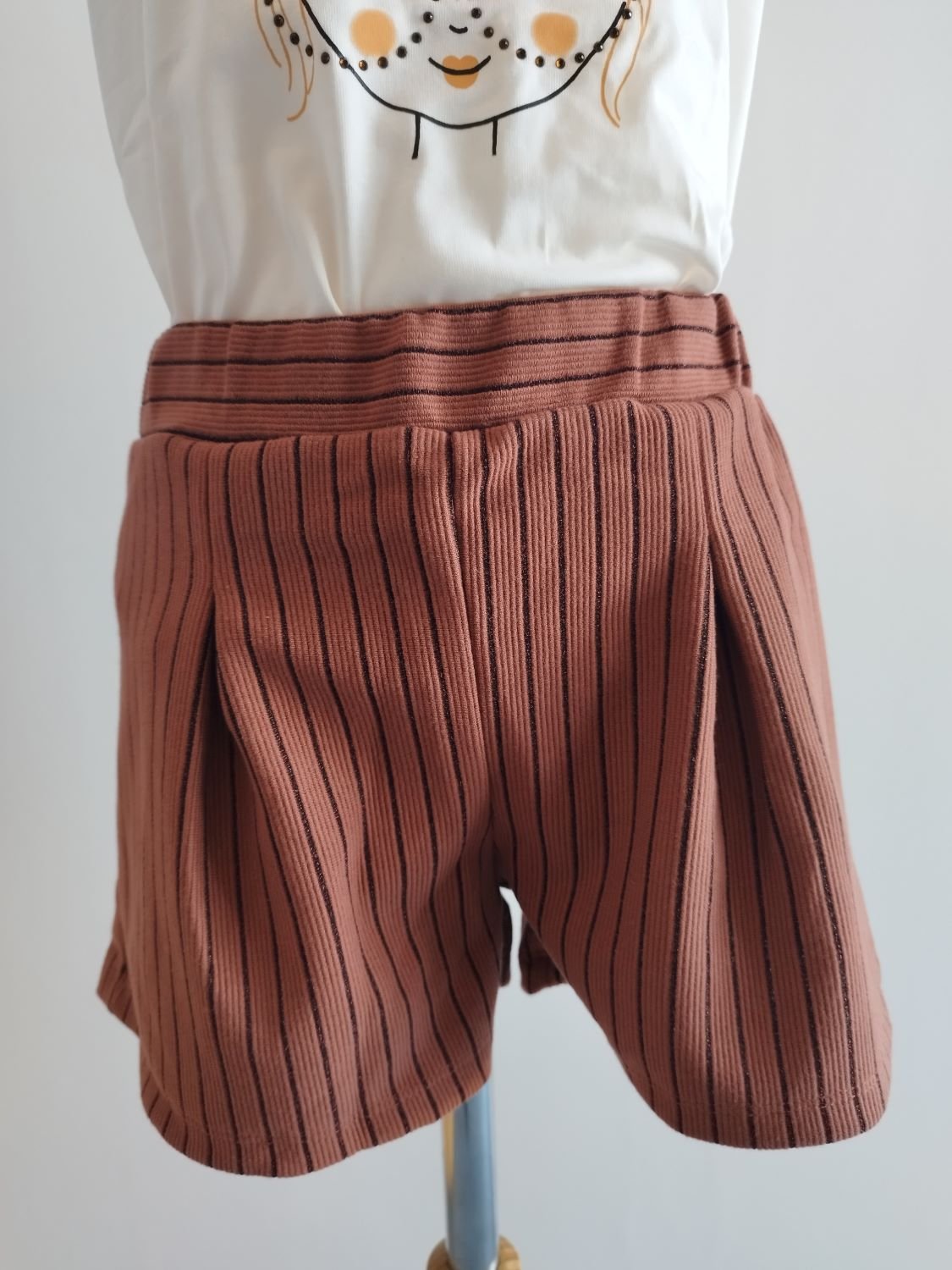 Conjunto composto por camisola com pormenor de óculos em brilhantes e calções.