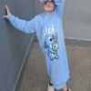 Vestido do Stitch de manga comprida com estampagem e capuz.